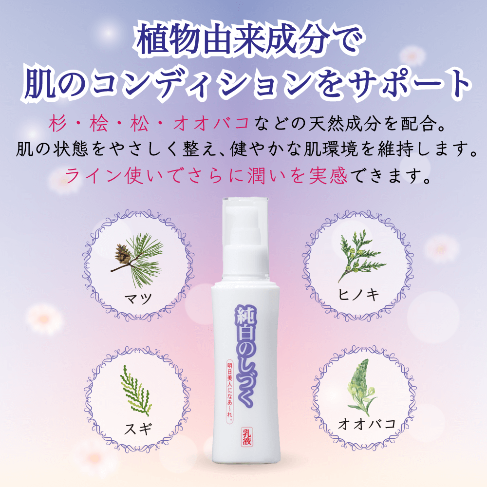 フローラさんのニオイノンノを使用以来、これは本物と思い、このたび、「雪恋姫」と「純白のしづく」を注文、早速、使用しました。2~3日しか使っておりませんが、納得です。言葉はいりません。10年前の肌に戻った感じです。嬉しいです。ありがとうございます。