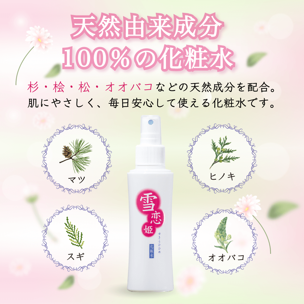 雪恋姫、本当にビックリしました。 洗顔後に使用しましたら、何と信州の湧き水で洗顔した時と全く同じ感じがしました。 「なぜ?」と思ったら、とにかくべとつきがなく、化粧品の嫌な臭いもないのです。 嬉しくて朝、昼、夕と三回も洗顔して雪恋姫を使っています。 (株)フローラさんの商品はコマーシャル通りで嘘がないので大助かりです。