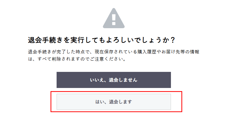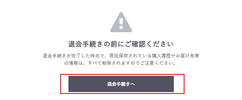 *退会手続きが完了した時点で、現在保存されている購入履歴やお届け先等の情報は、すべて削除されますのでご注意ください。