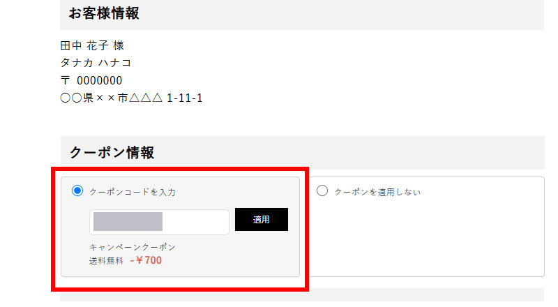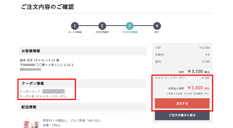 初回購入限定「コード名」を使用してのご購入手続が完了となります。