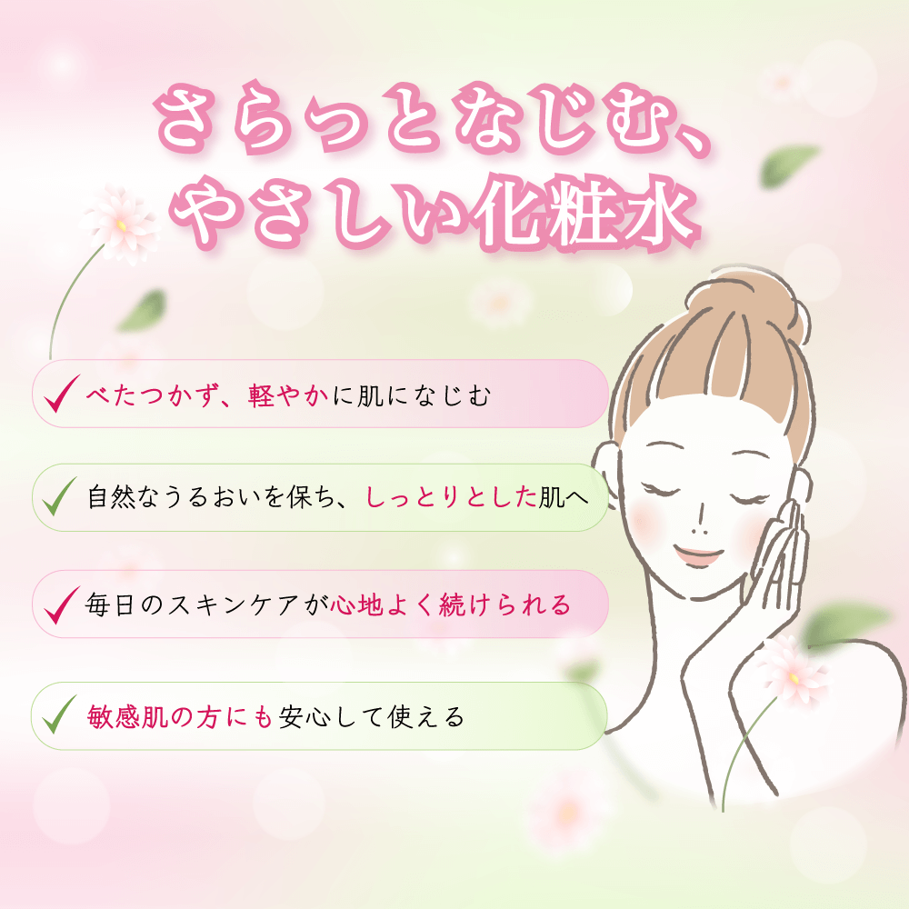 秋から冬にかけて肌が乾燥して、何時も水分を欲しがっている感じでした。しかし、「雪恋姫」のおかげで最近しっとり感に満たされています。萎れていた植物が生き返る様に、この老齢の肌にたっぷりの「雪恋姫」を与える事によって、潤いが出て来ました。やはり肌には「雪恋姫」の必要性をとみに感じているこの頃です。この「雪恋姫」は全て肌が吸い込んで呉れる感じで、私にとってなくてはならない素敵な商品となってしまいました。