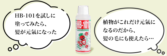 届いて早速使ったばかりです。 育毛剤はいろいろ使いましたがべたつきやにおいが気になって長続きしませんでした。この商品はその点全く問題がないため使いやすそうです。これから楽しみに毎日使いたいと思います。 園芸好きでペットを買っているためHB-101とニオイノンノは長年愛用しています。この商品のことを知った時、HB-101にあやかって別のメーカーが命名したのだろうか、それにしてもHGってハゲでしょ酷いなと思ったのですが、よく調べると御社の商品だったので注文してみようと思いました。