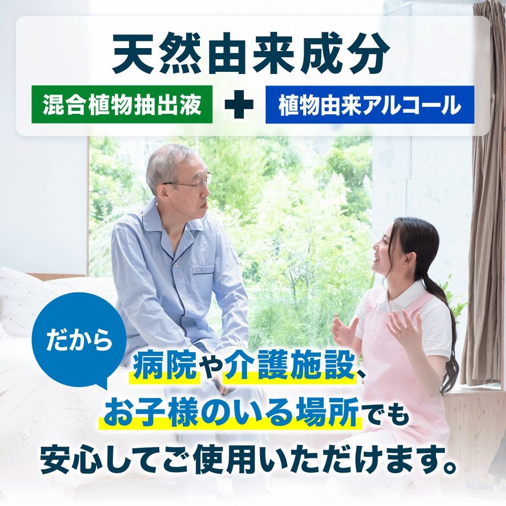 さらに、臭いの元の原因菌に対しても植物由来アルコール成分で除菌します。